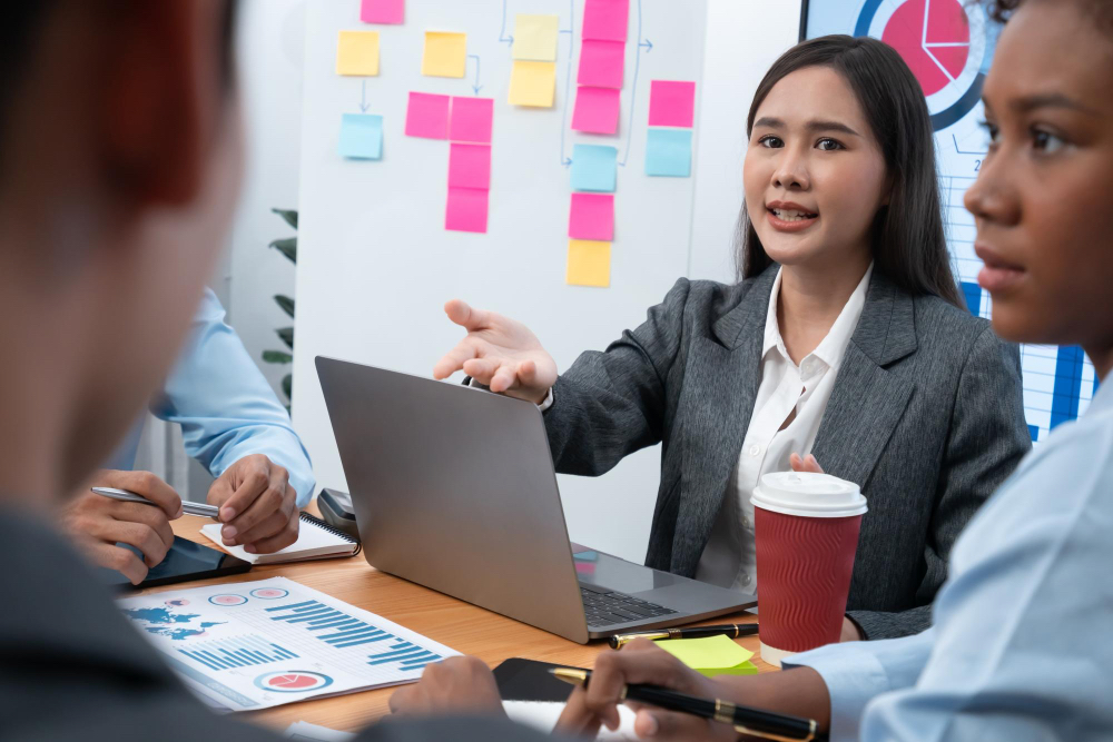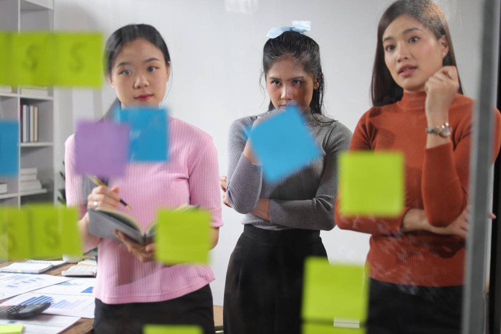 Sesi brainstorming akan lebih menarik jika diperkaya dengan alat bantu visual seperti papan ide, sticky notes, atau aplikasi kolaboratif. Cara brainstorming di perusahaan ini membantu karyawan menyalurkan ide secara visual, mempercepat pemahaman, dan menumbuhkan keterlibatan. Penggunaan media kreatif termasuk tips brainstorming di perusahaan yang efektif meningkatkan produktivitas tim.